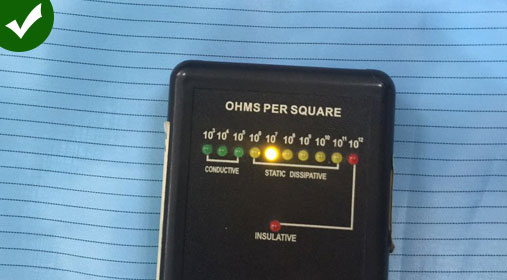 易合通產(chǎn)品采用5MM條紋面料導(dǎo)電綢防靜電值能達(dá)106-109次方,持久性防靜電,耐清洗次數(shù):100次左右,兼有阻燃、防油性能